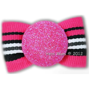 Focus on fabulous! This bright pink glitter dot is like a shiny spotlight on a pink, black and white grosgrain ribbon.