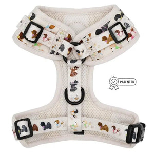 Our original patented design features: Two D-rings: One D-ring on back for leash attachment Another versatile front D-ring that can be used for "no pull" or tags Custom printed neoprene fabric with breathable mesh