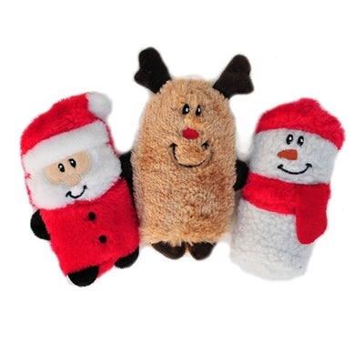 Don't underestimate the squeakability in this small, cute toy. Squeakie Buddies are soft, adorable, and super fun! This set of 3 includes one of each: Santa, Reindeer, and Snowman. Stuffing-free to minimize mess. Great for small dogs.
