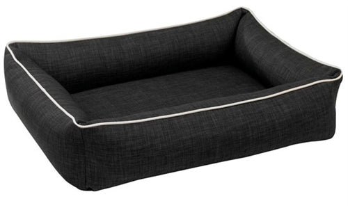 Contemporary, streamlined shape, and clean lines define this latest trend setting bolster design. Dual layer, fiber topped foam inner cushion provides orthopedic support and plush comfort. In this unique one piece design, the bottom cushion is secured (zippered) into the bottom of the bed, making this a great solution for dogs that tend to dig and chew removable cushions.