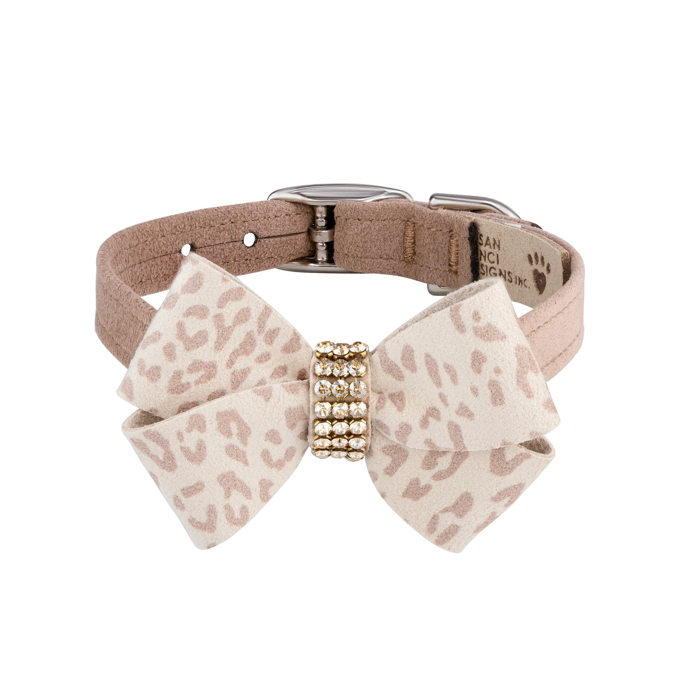 Our Nouveau Bow collection gives you the best of style and plenty of bling--using our Giltmore Crystal. Comfortable for the dog, easy for you to maintain and constructed from a nearly indestructible material, this collar is a good value that will last a long time. Like all of our designs, it is made from genuine commercial upholstery grade Ultrasuede® fabric that we import from Japan and only Swarovski Crystal. This soft, comfortable fabric is breathable, washable and colorfast. Best of all it is manufactured in the USA.