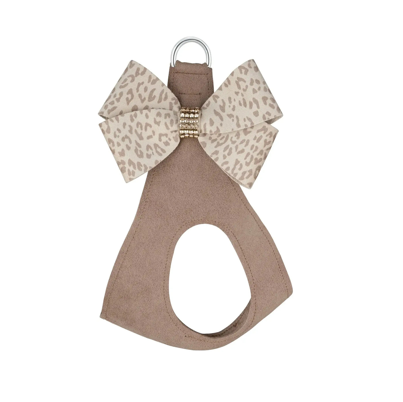 This harness is for those who value no-fuss convenience and no-choke comfort for their dog. Made from Ultrasuede® fabric with the soft texture and feel of premium suede. Ultrasuede® also has the highest grade of durability, making this harness resistant to stains and discoloration, it is even machine washable! The Tiffi Gingham Nouveau bow captures all attention with bold curves embraced by rows of gleaming Swarovski Crystals®. The cut is well below the dogs’ neck so any pulling is across the shoulders and not the neck resulting in pure comfort for your dog. The harness fastens by a single quick-release buckle. Manufactured in the USA