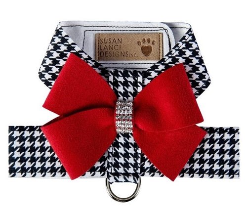 Susan Lanci Black and White Houndstooth Red Nouveau Bow Tinkie Harness