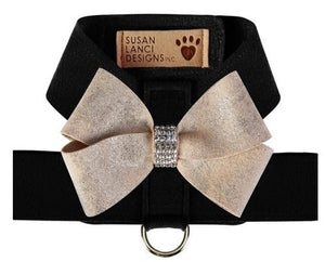 Susan Lanci Black Tinkie Harness with Champagne Glitzerati Nouveau Bow