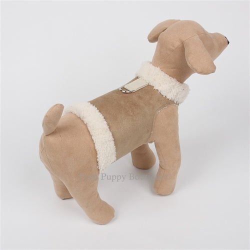 Here is a great looking, no frills coat. Our Luxe Suede coat with Chenille lining is accented with a Chenille collar and waist band and a D ring for leash attachment. This coat is manufactured in the USA.