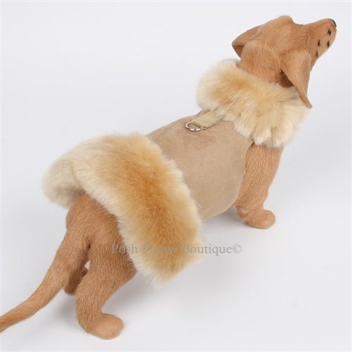 Our Luxe Suede coat with Chenille lining is accented with a D ring for attaching a leash.