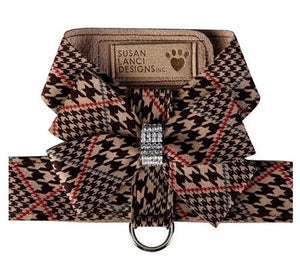 Embrace Fall in this classy Chocolate Glen Houndstooth Nouveau Bow Tinkie. Rows of genuine Swarovski Crystals glisten against this classic print. Simply and beautifully made with an indestructible material, this harness is a good value that will last a long time. Hook and loop under belly closure allows for no fuss put on and take off action. Like all of our designs, it is made from genuine commercial upholstery grade Ultrasuede® fabric that we import from Japan. This soft, comfortable fabric is breathable, washable and colorfast. As an assurance to both you and your customer, each item comes with an Ultrasuede® tag with instructions on the back for cleaning and maintenance.
