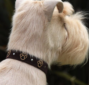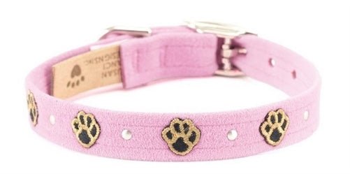 Susan Lanci Embroidered Paws with Studs Ultrasuede Dog Collar