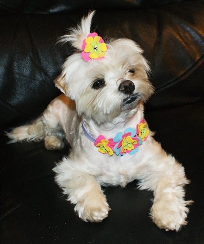 Our Fantasy Flower collection gives you the best of style and lots of color. Comfortable for the dog, easy for you to maintain and constructed from a nearly indestructible material, this collar is a good value that will last a long time. In addition to that, the fabric gives you a wide range of colors from soft pastels to vibrant hues. Like all of our designs, it is made from genuine commercial upholstery grade Ultrasuede® fabric that we import from Japan and only Swarovski Crystal. This soft, comfortable fabric is breathable, washable and colorfast.