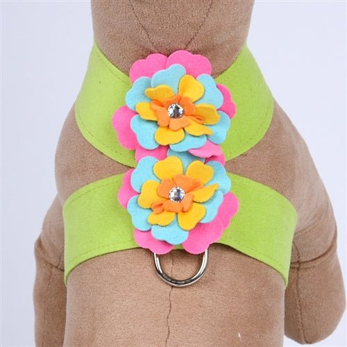 Our Fantasy Flower collection gives you the best of style and plenty of color with Swarovski Crystal.Here is a great harness for those who want a basic, functional harness. Comfortable for the dog, easy for you to maintain and constructed from an indestructible material, this harness is a good value that will last a long time. In addition to that, the fabric gives you a wide range of colors from soft pastels to vibrant hues. **This item is a custom made to order item. It is not eligible for returns or exchanges. Please contact us with sizing questions prior to purchasing**