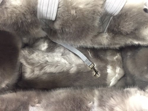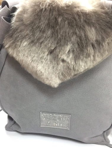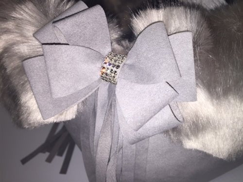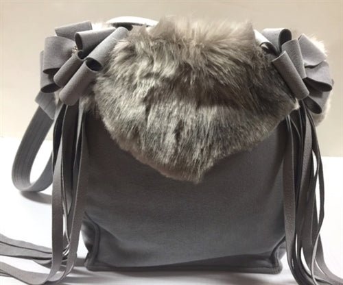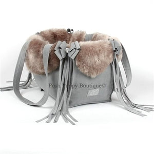 Susan Lanci Luxury Purse Carrier Collection- Nouveau Bow w-Fringe Platinum w-Soft Silver Fox Faux Fur