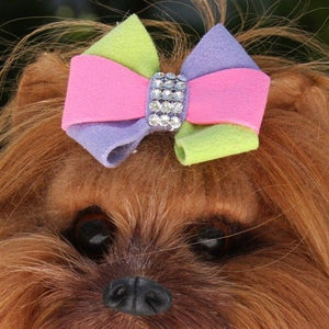 This three loop bow is absolutely the perfect size for our Maltese's ponytail! I love how it also matches her springtime flower collar. Miss Lovey looks gorgeous in her set!