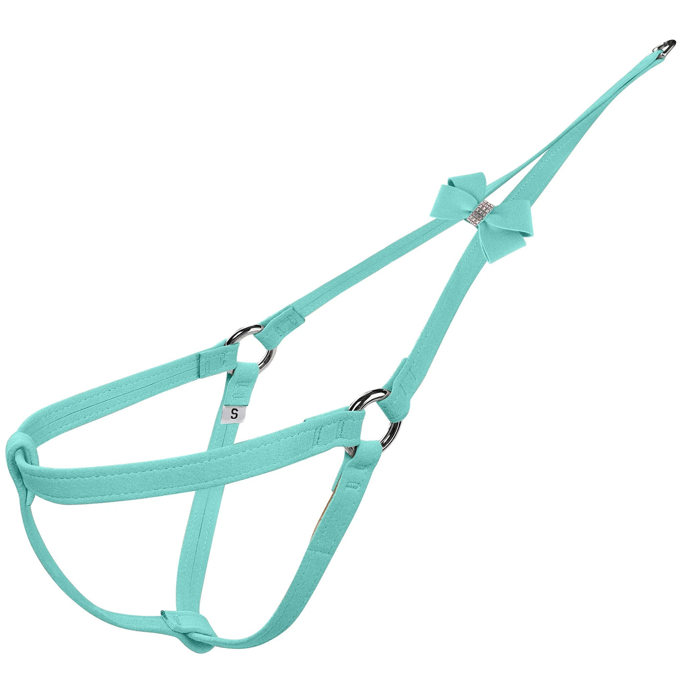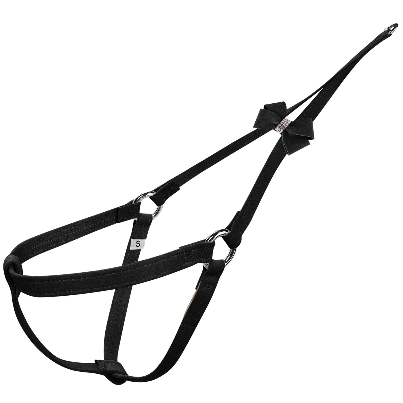 The Step N Go Harness is for those who value no-fuss convenience and no-choke comfort for their dog. Made from Ultrasuede® fabric with the soft texture and feel of premium suede. Ultrasuede® also has the highest grade of durability, making this harness resistant to stains and discoloration, it is even machine washable! The cut is well below the dog’s neck, so any pulling is across the shoulders and not the neck resulting in pure comfort for your dog. The harness tightens by a well designed slider, allowing for size adjustments. Handcrafted to order in sunny San Diego, California, USA