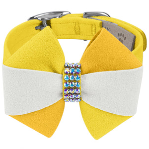 This dog collar has a premium look and feel while being easy for you to maintain. Made from Ultrasuede® fabric with the soft texture and feel of premium suede. Ultrasuede® offers the highest grade of durability, making this collar resistant to stains and discoloration. It is even machine washable! The collar width is ½”. We recommend your dog should always be walked with a harness. Our collars are designed for ID tags, charms, and for decoration, they are NOT designed for pulling dogs. Manufactured in the USA.