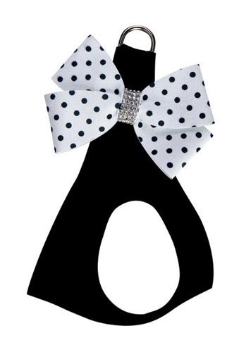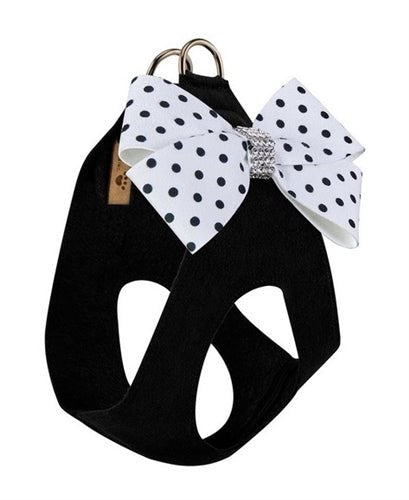 Pure & Simple comfort and ease, this harness fastens by a single quick-release buckle located above the dogs’ shoulders. Cut well below the dogs’ neck so the pulling is across the shoulders and not the neck. Easy for you to maintain, this harness is made from genuine commercial upholstery grade Ultrasuede® fabric that we import from Japan. This soft, comfortable fabric is breathable, washable and colorfast. As an assurance to both you and your customer, each item comes with an Ultrasuede® tag with instructions on the back for cleaning and maintenance. For those designs with crystal, it is exclusively Swarovski.