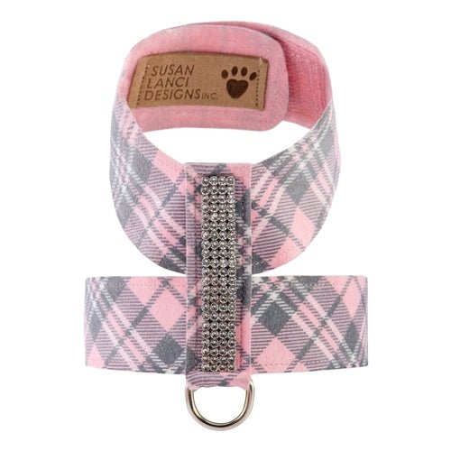 Our new Scotty plaid captures that fall time excitement, knowing winter bliss is just around the corner. The preppy Puppy Pink Plaid is the perfect backdrop for your dog to sparkle and glisten in genuine Swarovski 4 Row Giltmore. Made with an indestructible material, this harness is a good value that will provide comfort and function for a long time. Hook and loop under belly closure allows for no fuss put on and take off action. Like all of our designs, it is made from genuine commercial upholstery grade Ultrasuede® fabric that we import from Japan. This soft, comfortable fabric is breathable, washable and colorfast. As an assurance to both you and your customer, each item comes with an Ultrasuede® tag with instructions on the back for cleaning and maintenance.