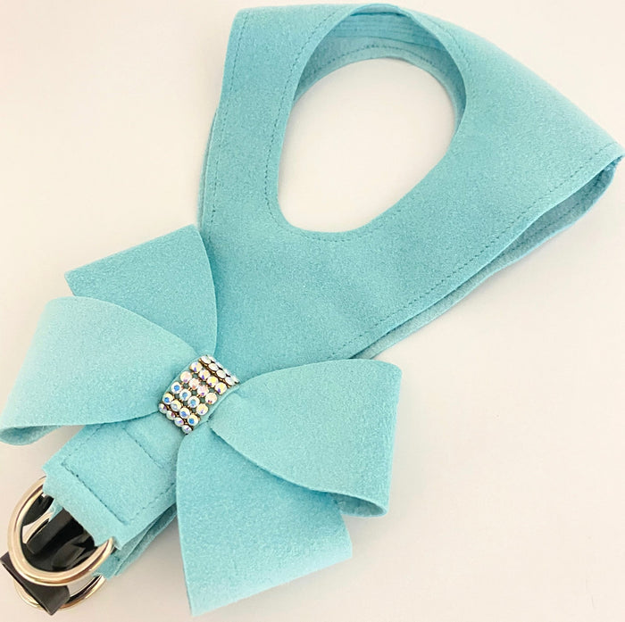 Just like our solid Ultrasuede's, use after use, wash after wash, this timeless fabric will maintain it's beauty. Also known as the Pure & Simple, this harness fastens by a single quick-release buckle located above the dogs’ shoulders and is cut well below the dogs’ neck so the pulling is across the shoulders and not the neck. The end result is pure comfort for the dog. As an assurance to both you and your customer, each item comes with an Ultrasuede® tag with instructions on the back for cleaning and maintenance.
