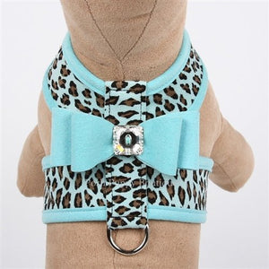 Susan Lanci Tiffi Blue Cheetah Contrasting Tinkie Harness- with Big Bow