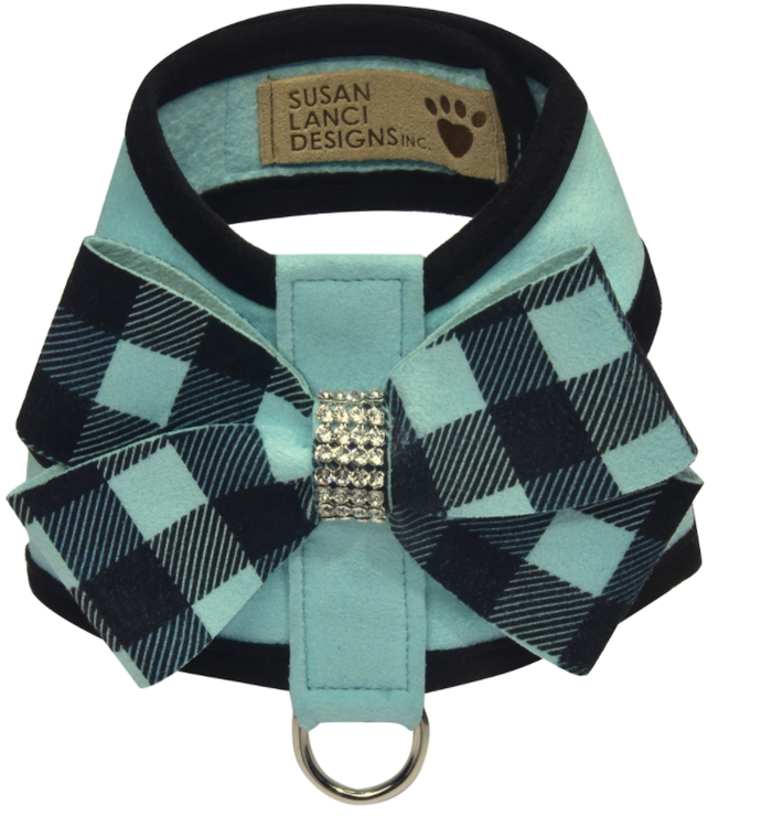 Susan Lanci Tinkie Harness with Tiffi Blue Gingham Bow