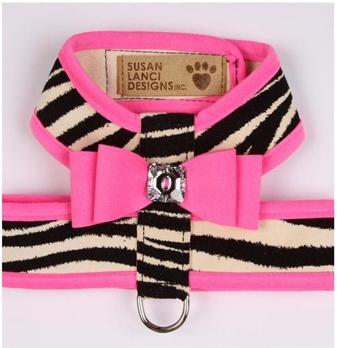 Susan Lanci Two Tone Big Bow Tinkie Harness in Perfect Pink and Zebra