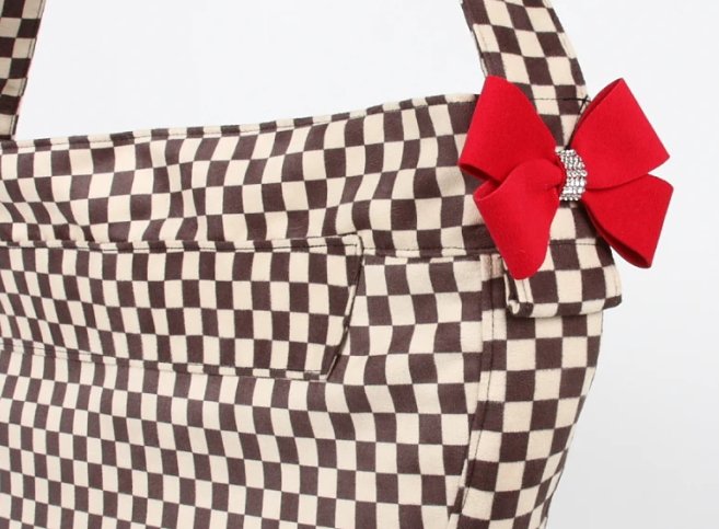 Susan Lanci Windsor Check Collection Cuddle Carrier- Red Nouveau Bow