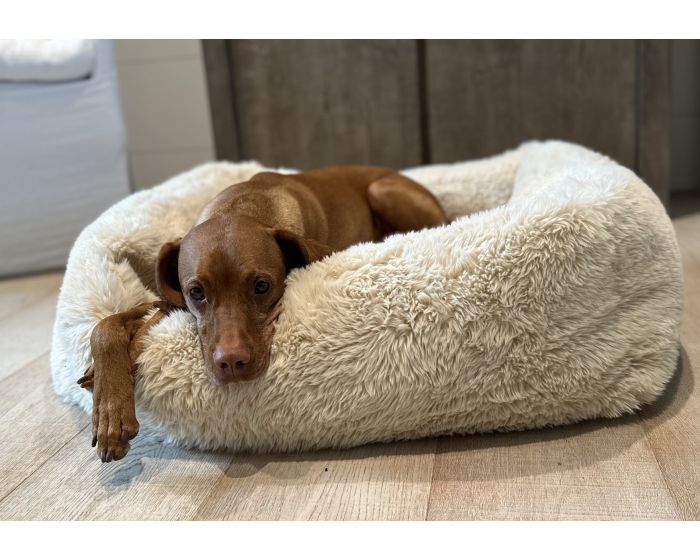 Indulge your dog with this super plush, overstuffed, bed. Made with plush terry & luxurious furs. This is sure to be your dog’s favorite lounging spot and a design highlight in your home.