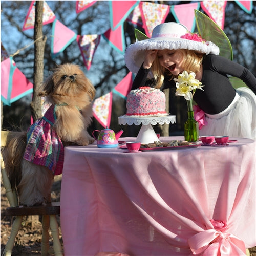 Please use the total length of your dog when ordering our dresses. Most of our dresses are adjustable in the chest and waist so it is often more important to have the correct length. If your dogs Length size is more than two Chest sizes different, please select the size in between. For example, a dog with a chest measurement of 11" (XXS) and a length measurement of 10" (S) would need to order a size XS.