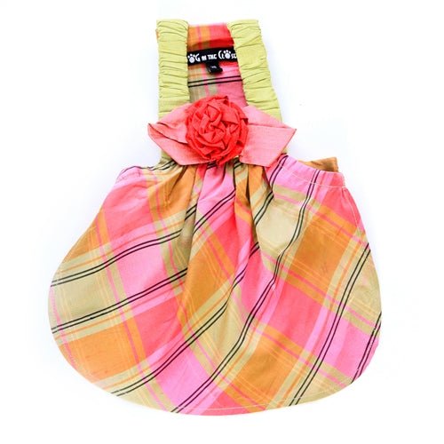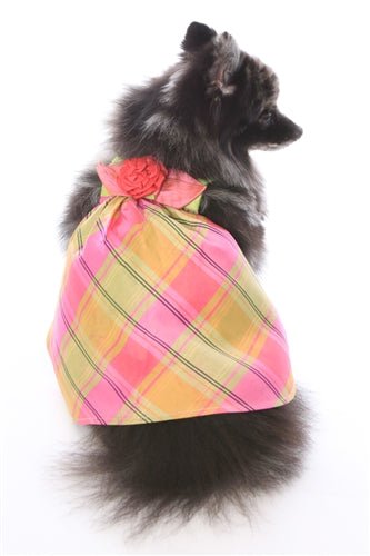 Silk Plaid dress with silk flower/bow.
