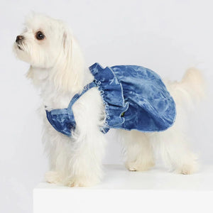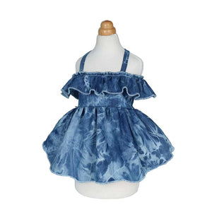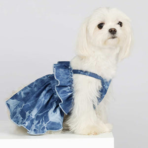 Elevate your furry friend's summer style with our chic tie dye denim dog dresses. Featuring eye-catching ruffles and a one-of-a-kind denim wash, these dresses are the perfect choice for outdoor adventures and gatherings. From vacations to everyday outings, these dresses will make your pup stand out and capture hearts with their adorable look. Don't miss out on the stylish tiered ruffle design and eye-catching halter neck style - the perfect addition to any dog's summer wardrobe.