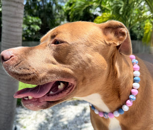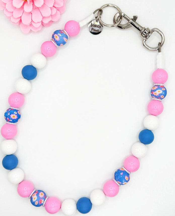 Too Cute to Bloom beaded dog collar is giving petal-powered sass in the prettiest way possible. 💁 ♀️ With playful florals and pops of pink and blue, this collar is made for pets who were born to turn heads (and maybe stir a little drama in the garden). 🌸✨ Handcrafted features include: - BPA free 15mm Silicone beads - 304 Vinyl Coated Stainless Steel Aircraft Wire - Stainless Steel Swivel Lock and Ring - Waterproof, Easy to Clean!