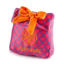 Tory Bark Gift Bag is a new addition to our Fashion Hound Collection of designer parody plush dog toys. Your customers will love this fun and unique gift bag toy. Made of soft plush material with a fun squeaker inside. Measures 6 inches.