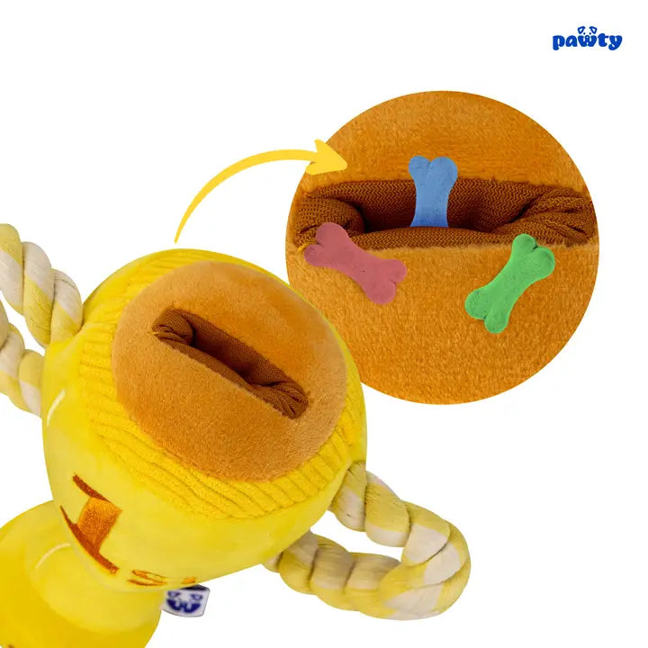 PAWTY trophy with Squeaker, Treat Slot and Tug Rope
