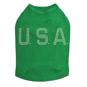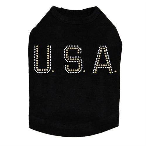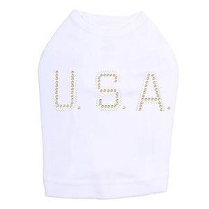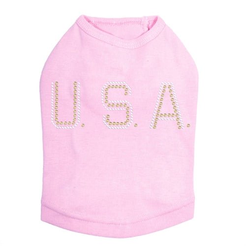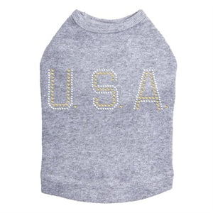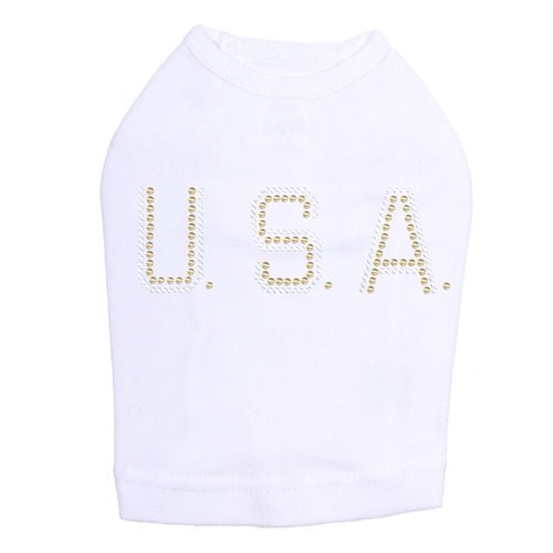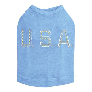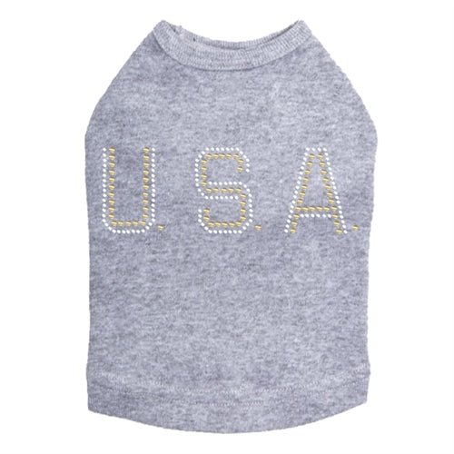USA Gold & Silver Nailheads Dog Tank- Many Colors