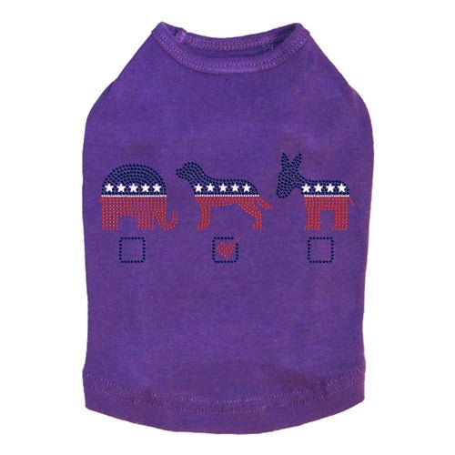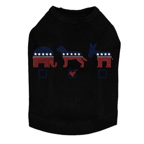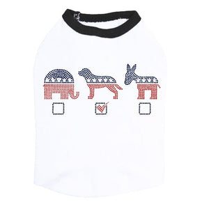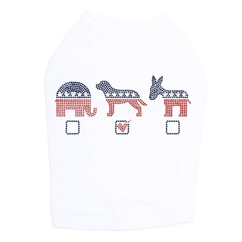 Vote Dog, Elephant, Donkey rhinestone Dog Tank.