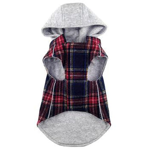 Weekender Dog Sweatshirt Hoodie - Red & Black Plaid Flannel