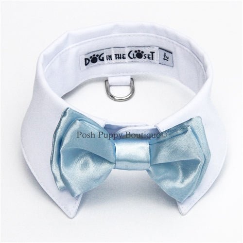 White Shirt Dog Collar with Baby Blue Bow Tie