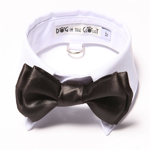 White Shirt Dog Collar with Black Bow Tie