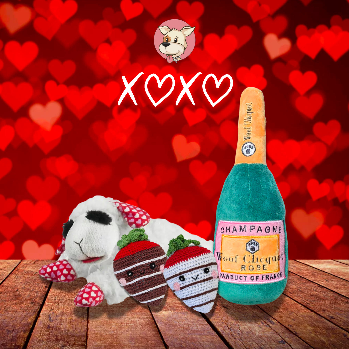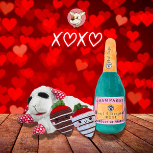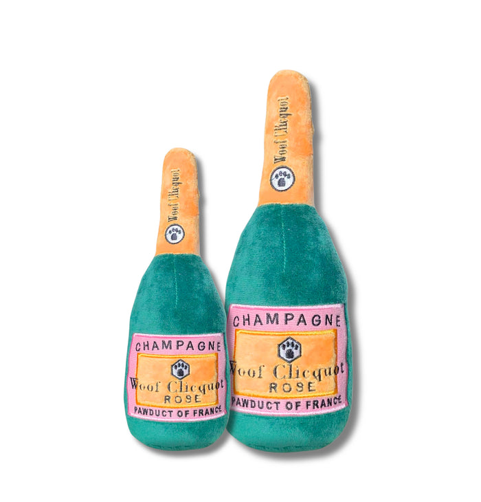 Woof Clicquot Rose' - Uncork a bottle of bubbly fun from the Muttini Bar Collection. Woof Clicquot Rose' is the perfect toy for any occasion. Woof Clicquot Champagne Bottle has a soft, plush exterior with a squeaker inside that drives dogs crazy. Every Pampered Pup should have a bottle! Imported.
