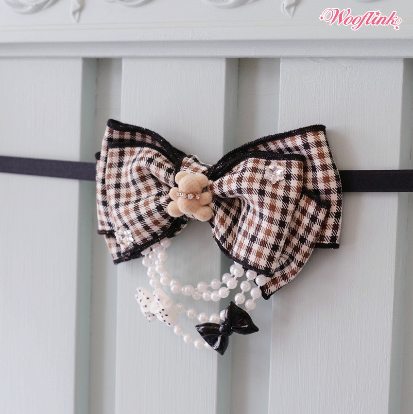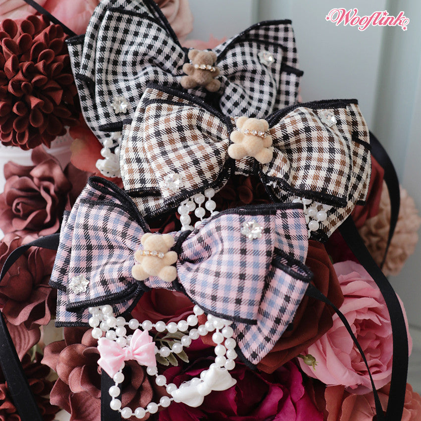 Luxurious gingham bow with pearls & charms