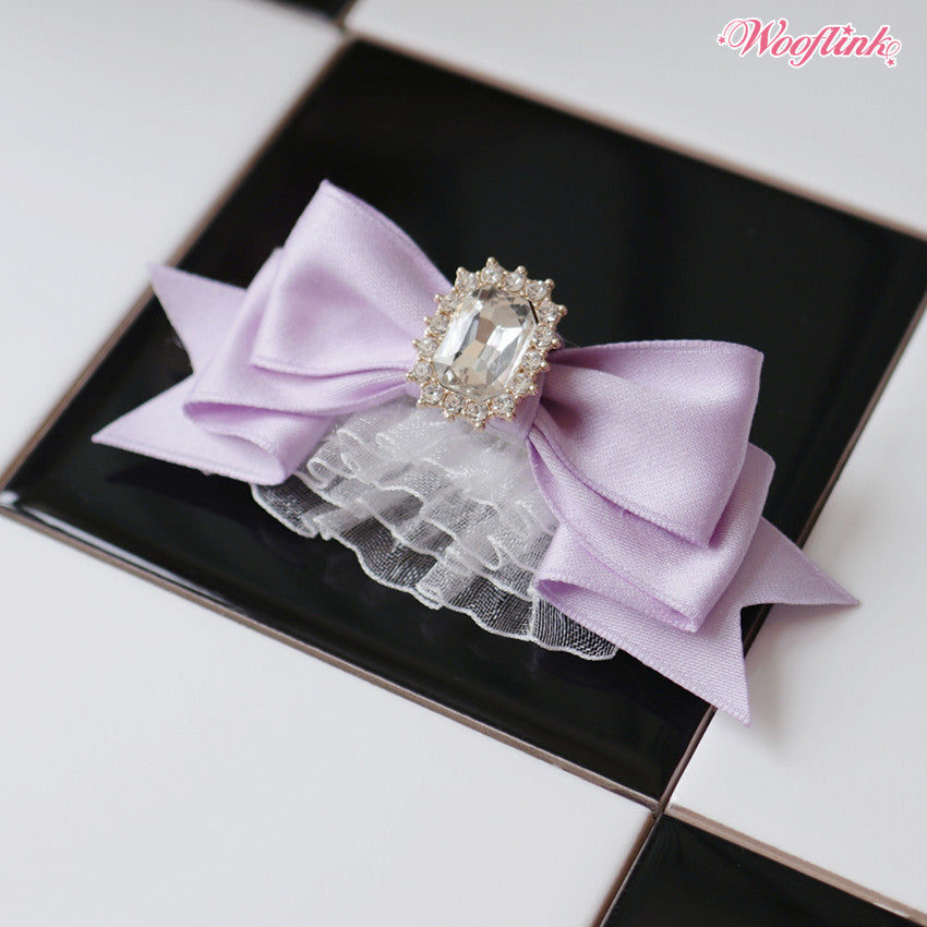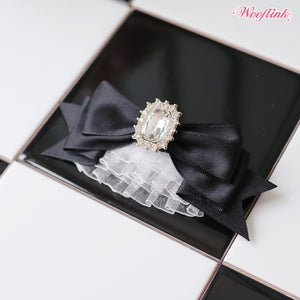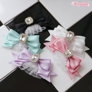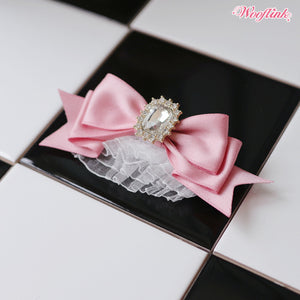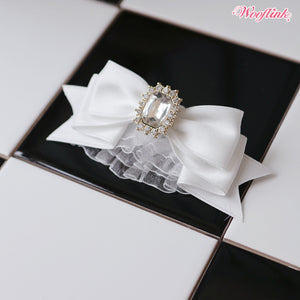 Luxurious satin bow with romantic heart-shaped pearl charm & rhinestones ♥