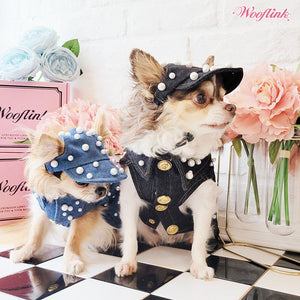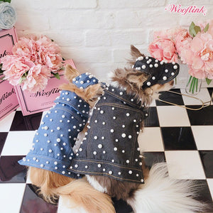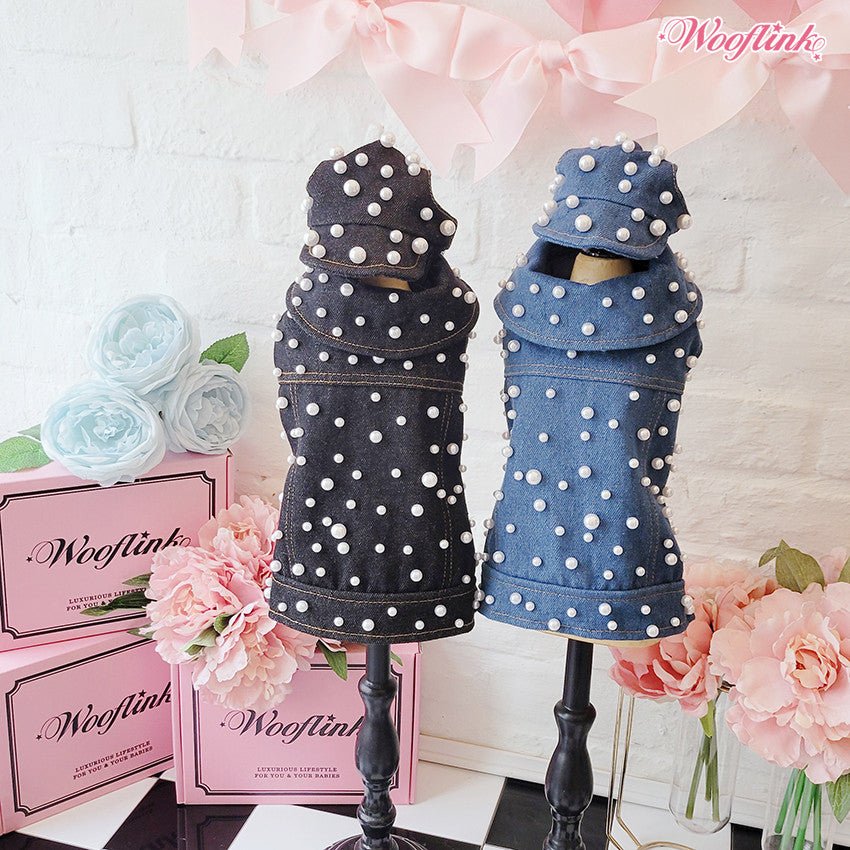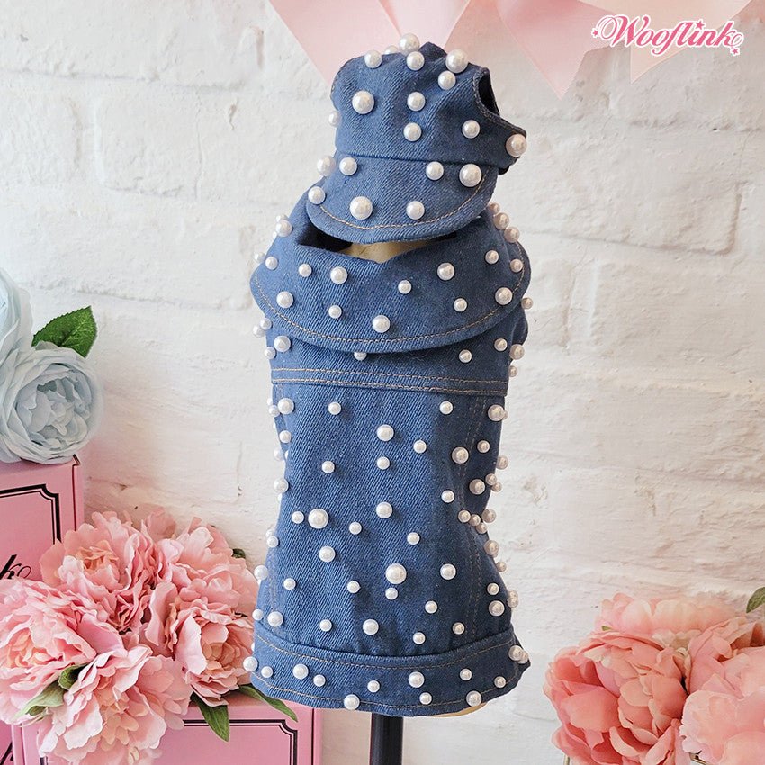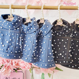 Fashionable denim vest with luxurious pearls ♥