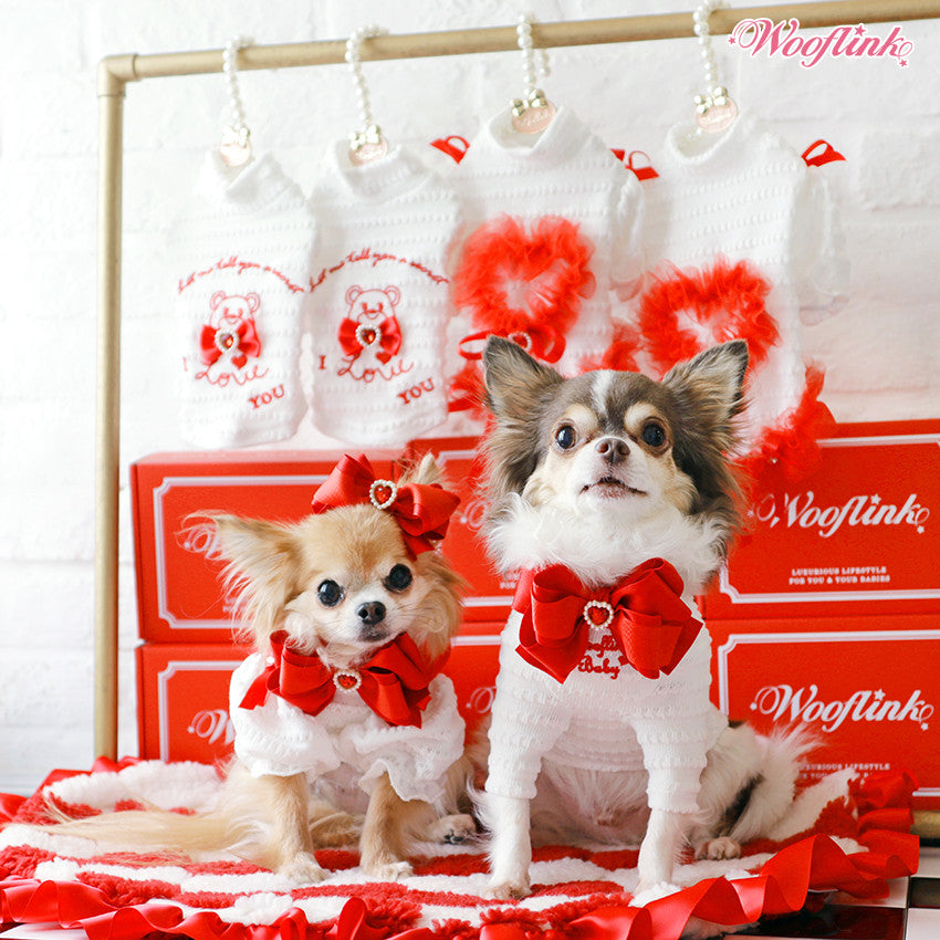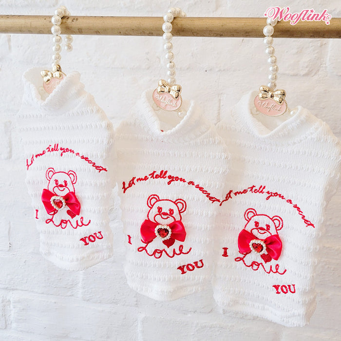 Cute embroidery with bow & luxurious heart shaped stone with pearls