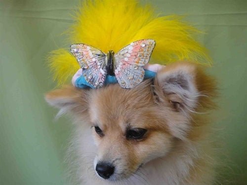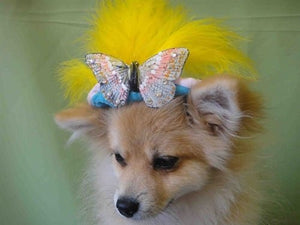 Yellow Feather Butterfly Teal Hat - Cat or Dog